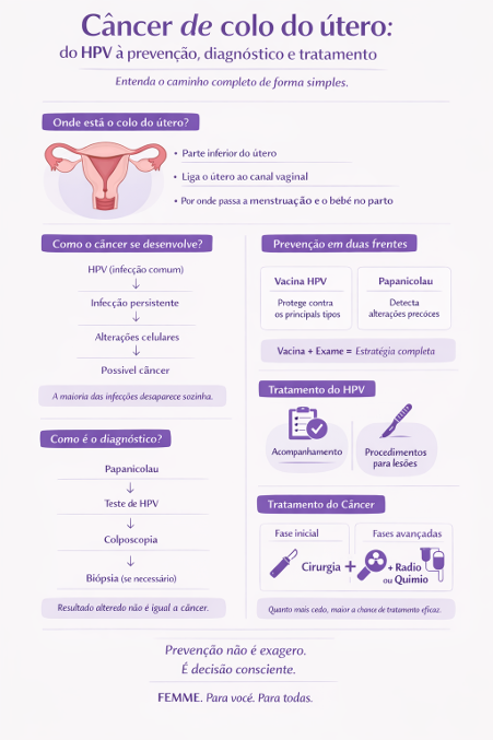 Outra informação importante: o Papanicolau deve ser feito mesmo na ausência de sintomas. O câncer de colo do útero, em fases iniciais, geralmente não causa sinais perceptíveis. Esperar sintomas não é uma estratégia segura.